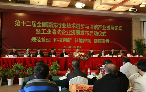 2012年10月23日,中國工業清洗協會、全國清洗行業信息中心、《清洗世界》雜志社聯合發起舉辦的以“規范管理、科技創新、節能降耗、健康發展”為主題的第十二屆全國清洗行業技術進步與清潔產業發展論壇暨工業清洗企業資質發布啟動儀式,在浙江杭州如期開幕,國務院國有資產監督管理委員會、中國石油和化學工業聯合會、中國石油天然氣集團公司、中國石油化工集團公司、中國化工集團公司、中國化學工程股份有限公司、中國化工施工企業協會、中國石油工程建設協會、中國建筑業協會石油化工建設分會的領導應邀出席本次論壇。來自全國各地的240余名清洗行業代表,齊聚一堂,共同見證了這一歷史時刻。